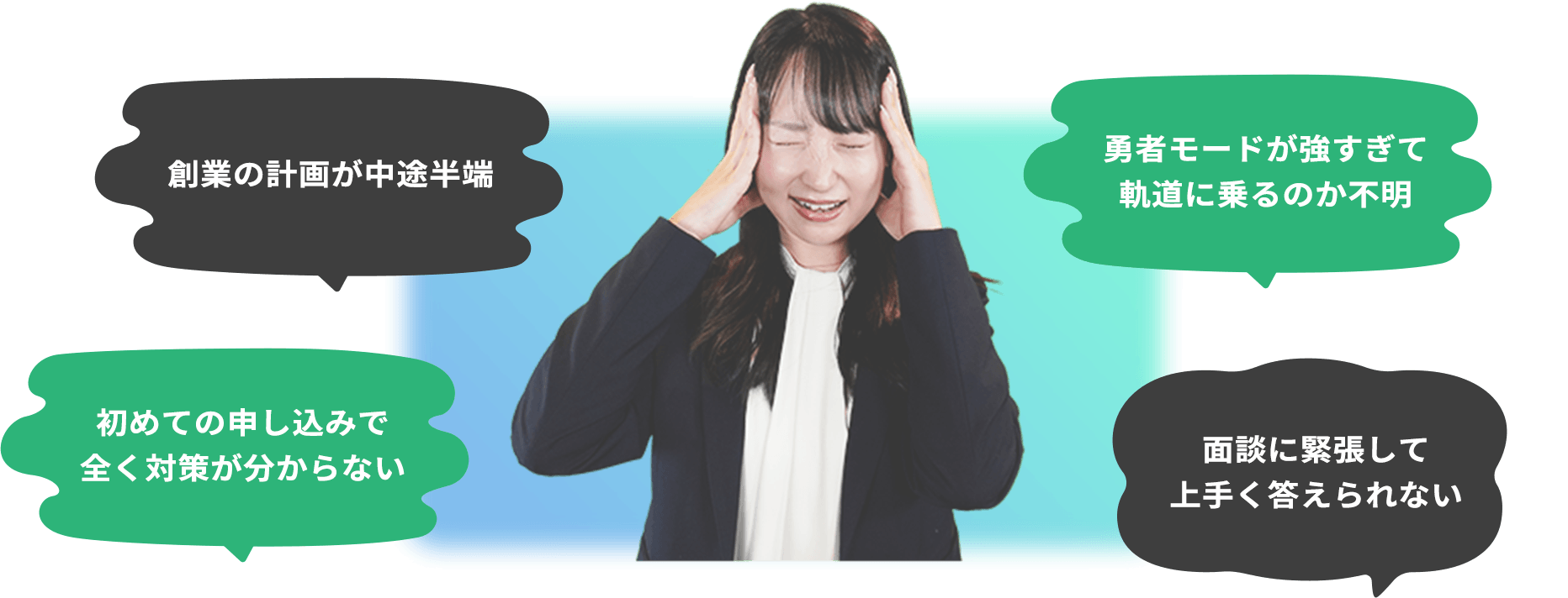 OLとして働きながら起業した方、一度は専業主婦として第一線を離れてから起業された方、フリーターからの転身で起業された方など、女性起業家ならではの悩み、不安などにも親切、丁寧、きめ細やかにご対応させていただいております。