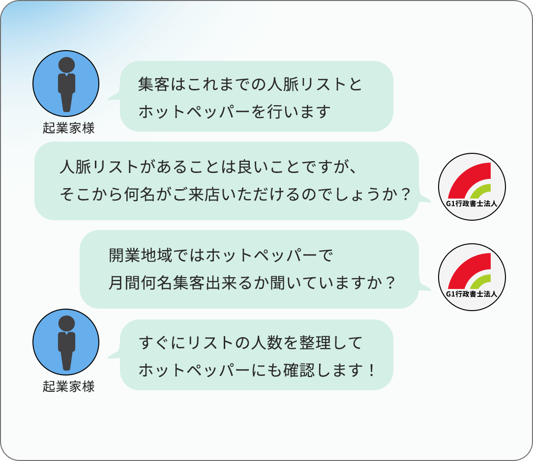 ご依頼をいただく事業者様からは、「そのような第三者のアドバイスが欲しかった!」と仰っていただいています。